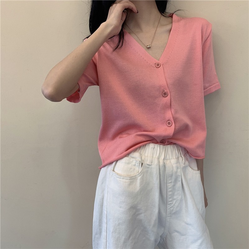 半小時前氣質v領薄款打底針織衫,2020夏季新款女裝短款開衫上衣 - 【買一送三】任選4件,僅需NT$1198