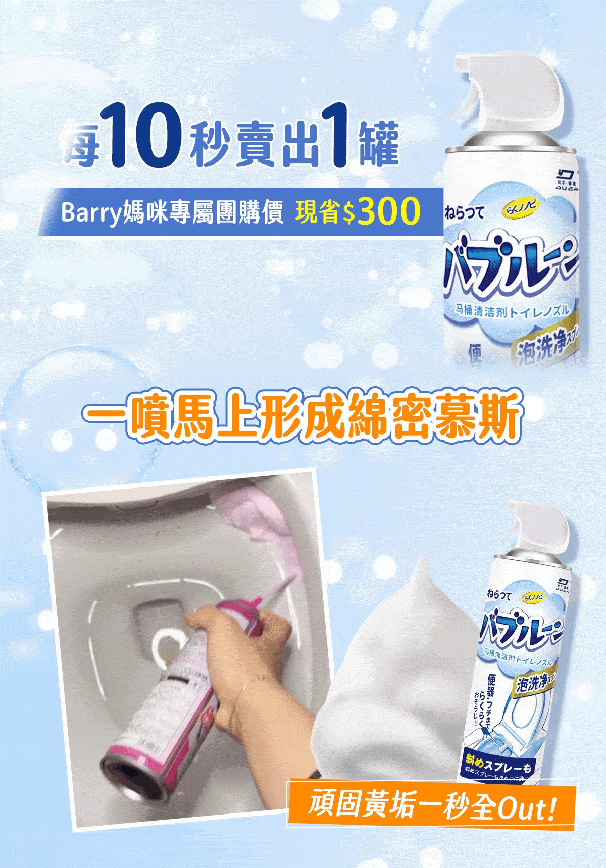 2分鐘前雪泡淨浴廁清潔慕斯 ,馬桶不刷也能亮 , 浴室清潔一瓶搞定 - 【買五送三】【MokoClean雪泡淨】8入組,團購好友分享 免運 NT$1299